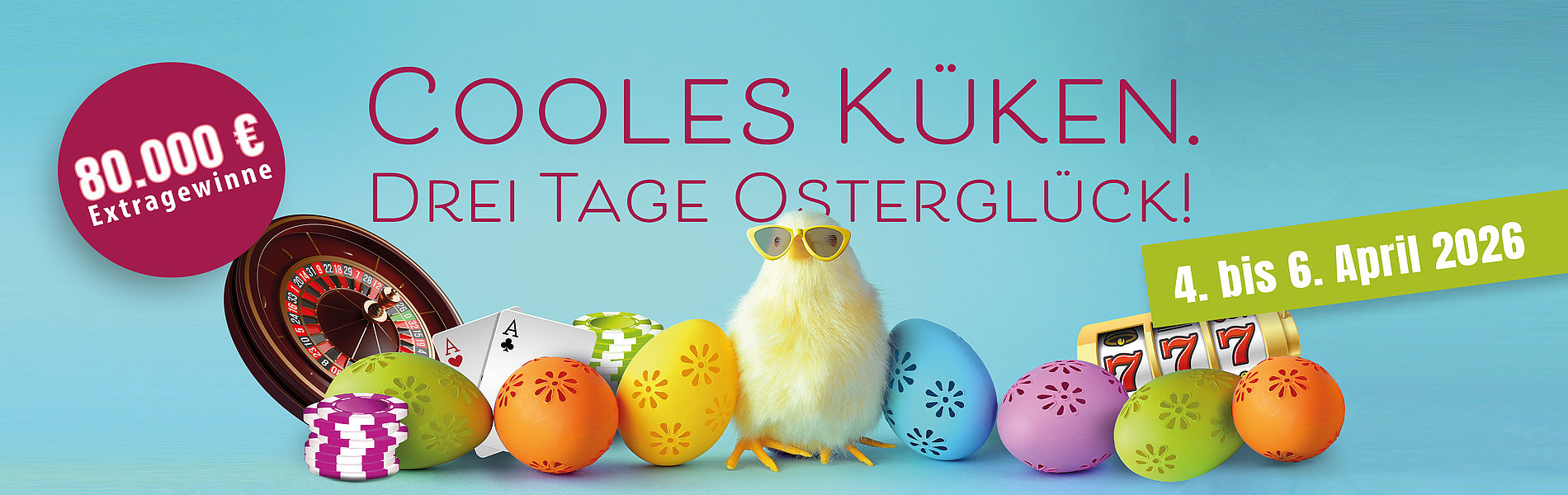 Bei der Osteraktion der Spielbank Wiesbaden erhält jeder Gast vom 4. bis 6. April 2026 pro Tag und