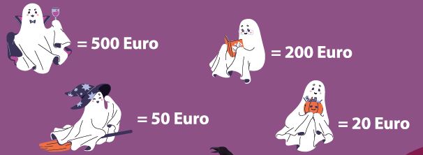 vom 30. Oktober bis 2. November 2025 pro Tag und Besuch ein Halloween-Los.